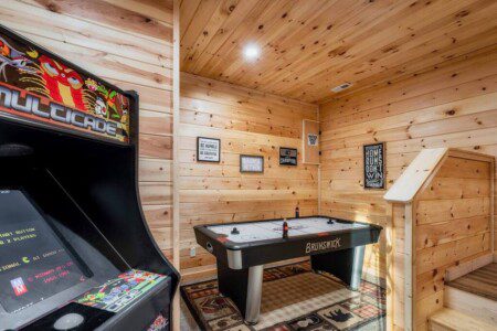 Enjoy views of Dollywood’s nightly fireworks right from the front deck, unwind in the private hot tub room, or play in two fully equipped game rooms with arcade consoles, air hockey, and a pool table.