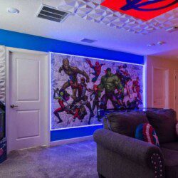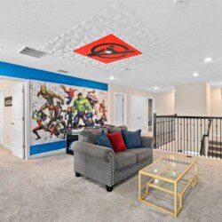 Welcome to ♥ The Magic Marvel Getaway ♥ a massive 4,500 sq. ft. luxury vacation home located in Storey Lake Resort. Just 11 minutes from Disney World, this 9-bed, 5-bath villa is perfect for large families, sports teams, and groups of up to 24 guests.