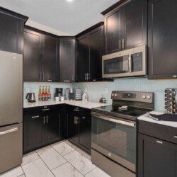 • Fully Equipped Kitchen – Granite countertops, stainless steel appliances & spice rack