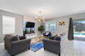 • Living Room – Cozy seating, large smart TV & direct pool access
